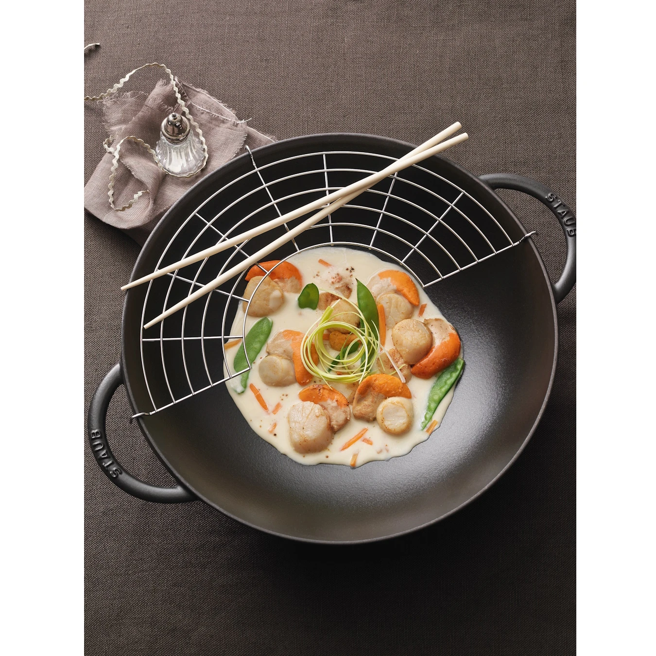 Воки STAUB — это высококачественная кухонная посуда, сочетающая в себе французское мастерство и передовые технологии. Благодаря использованию эмалированного чугуна, воки STAUB обеспечивают равномерное распределение тепла и превосходные результаты при приготовлении разнообразных блюд, особенно азиатской кухни.