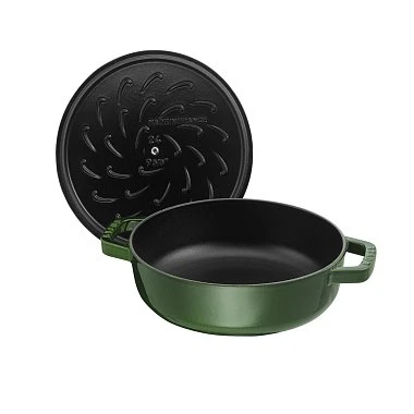STAUB Braisers — это чугунные эмалированные сотейники, созданные для медленного тушения и томления. В них удобно готовить рагу, жаркое, курицу с овощами, а также блюда во французском стиле — от рататуя до тушеной говядины. Сотейник позволяет сначала обжарить продукты до румяной корочки, а затем томить их под крышкой до готовности.